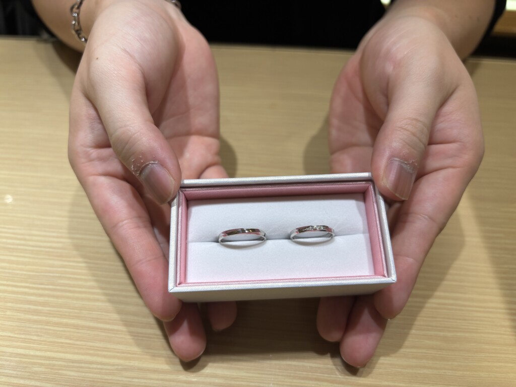 「FISCHER」のマリッジリングは、鍛造製法で作られておりその他にも沢山の鍛造製法で作られたブランドがありましたが、FISCHERがとても着け心地がよく長くつけたいと思えるマリッジリンングに出会えました!
